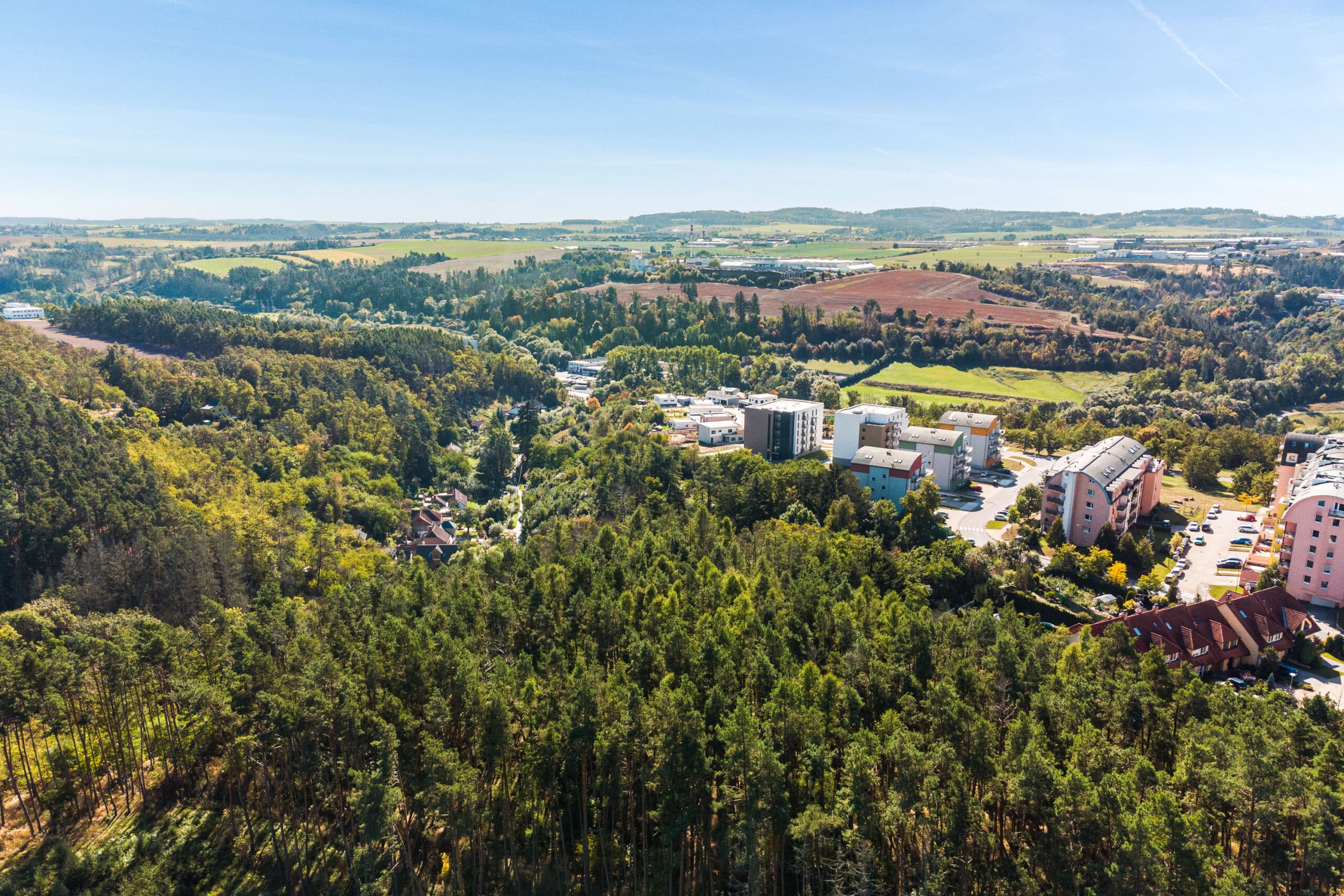 Umístění tohoto bytu je jedinečné. Bytový dům se nachází kousek od centra města, ale hned za domem je překrásné prostředí okolo vodní nádrže Lubí. V okolí domu je minimální provoz, protože se nachází ve slepé ulici vedoucí k rodinným domům.