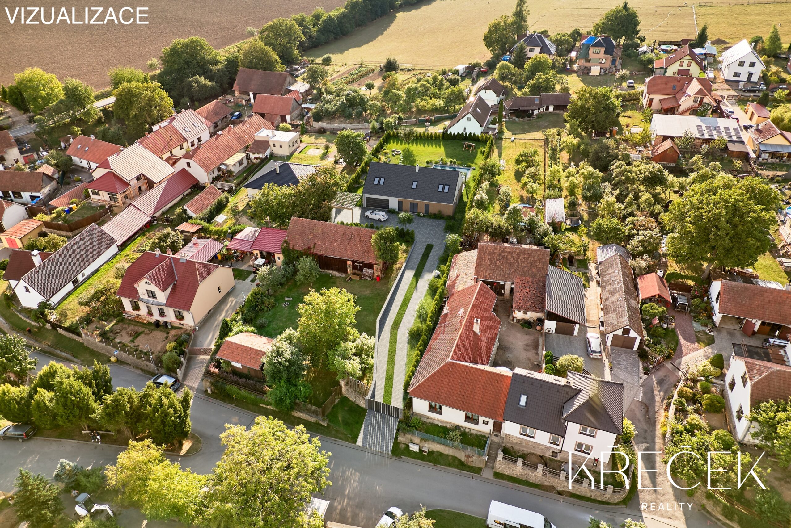 Více než 1 700 m² prostoru poskytuje dostatek místa pro dům, zahradu i parkování – volnost a soukromí jsou samozřejmostí.