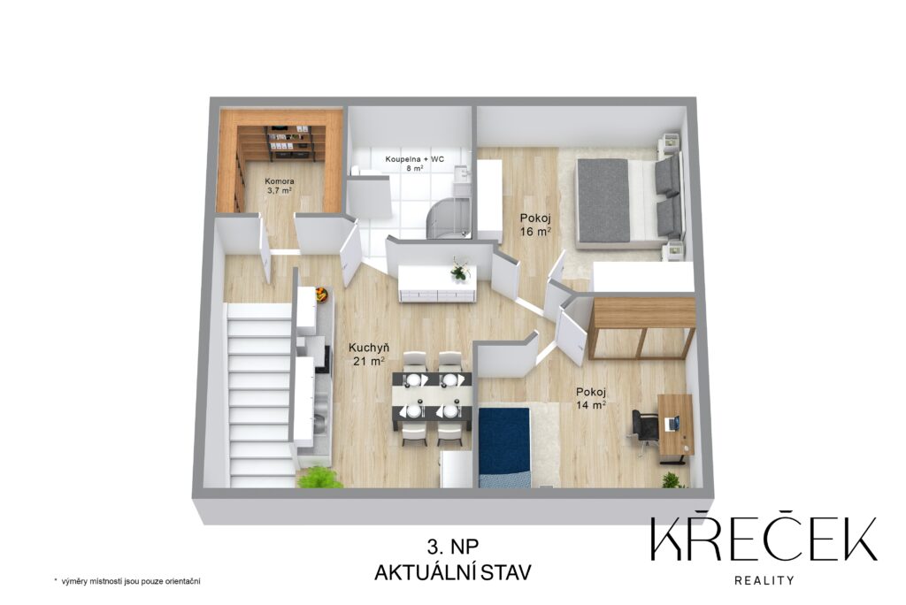 Díky vhodně zvolené přestavbě může být využit jako samostatné bytové jednotky, což představuje zajímavou investiční příležitost pro budoucí majitele.