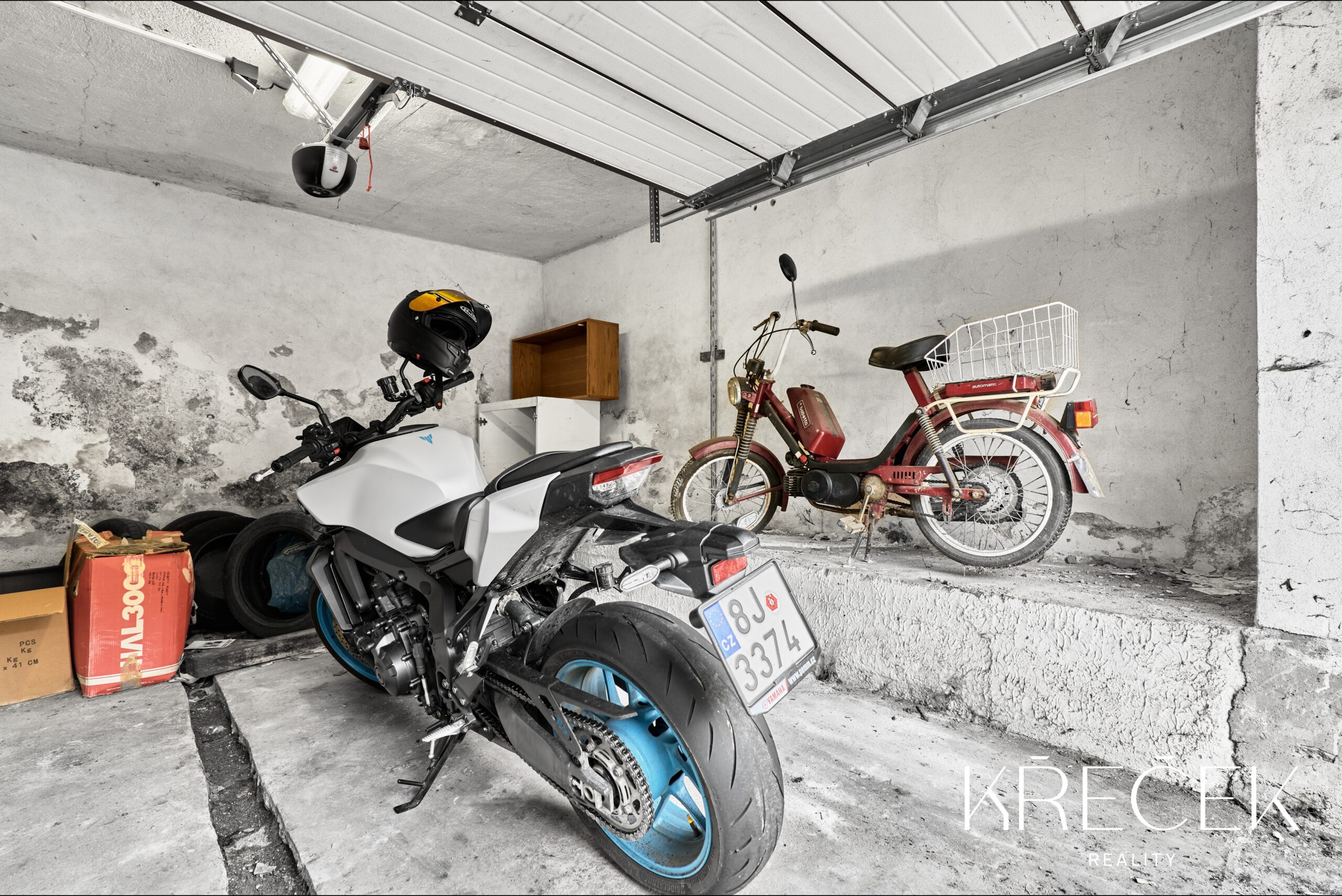 Dům je řadový, dvoupatrový, s vestavěnou garáží a zahradou s přístřeškem. Na přelomu tisíciletí prošel kompletní rekonstrukcí a vzniklo i podkrovní obytné patro. V roce 2002 byla do přízemí vestavěna garáž – vše doloženo projektovou dokumentací. V prosinci 2024 však horní patro zasáhl požár, takže nyní je nutná rekonstrukce střechy a podkroví, přesto ale statický posudek potvrzuje stabilitu stavby a možnost dalšího užívání. Dispozice domu je 5+1: přízemí se zádveřím, technickou místností a garáží, první patro nabízí vstupní halu, kuchyň, pokoj, koupelnu s WC a přístup na zahradu, podkroví, pak tři pokoje, koupelnu s WC a menší komoru či šatnu. Dům tak kombinuje historii, prostornost a potenciál – čeká jen na nového majitele, který mu vrátí jeho původní lesk.