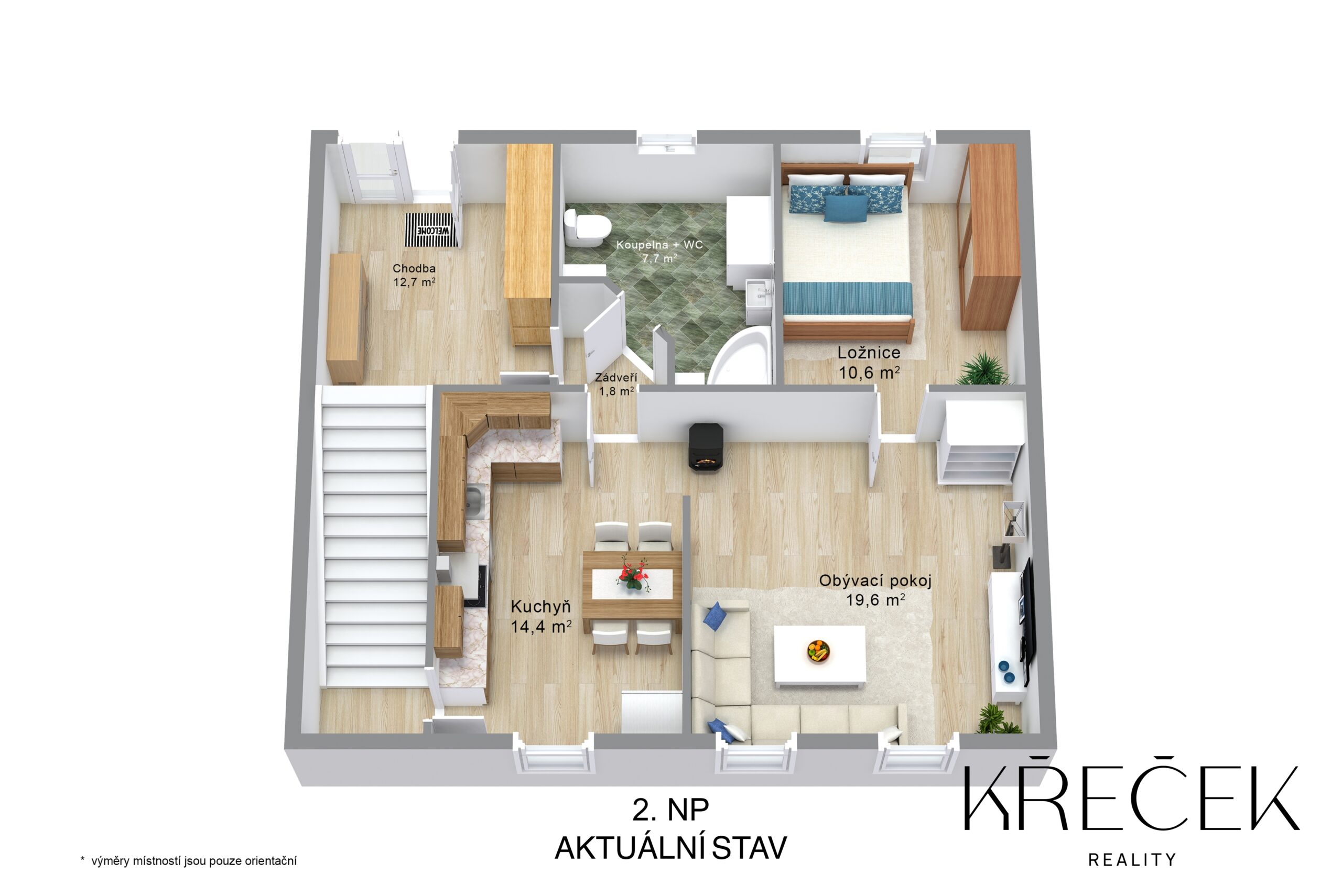 Následující vizualizace ukazují, jak by mohl dům vypadat po rekonstrukci. Každý prostor lze upravit a navrhnout přesně podle vašich představ a stylu.