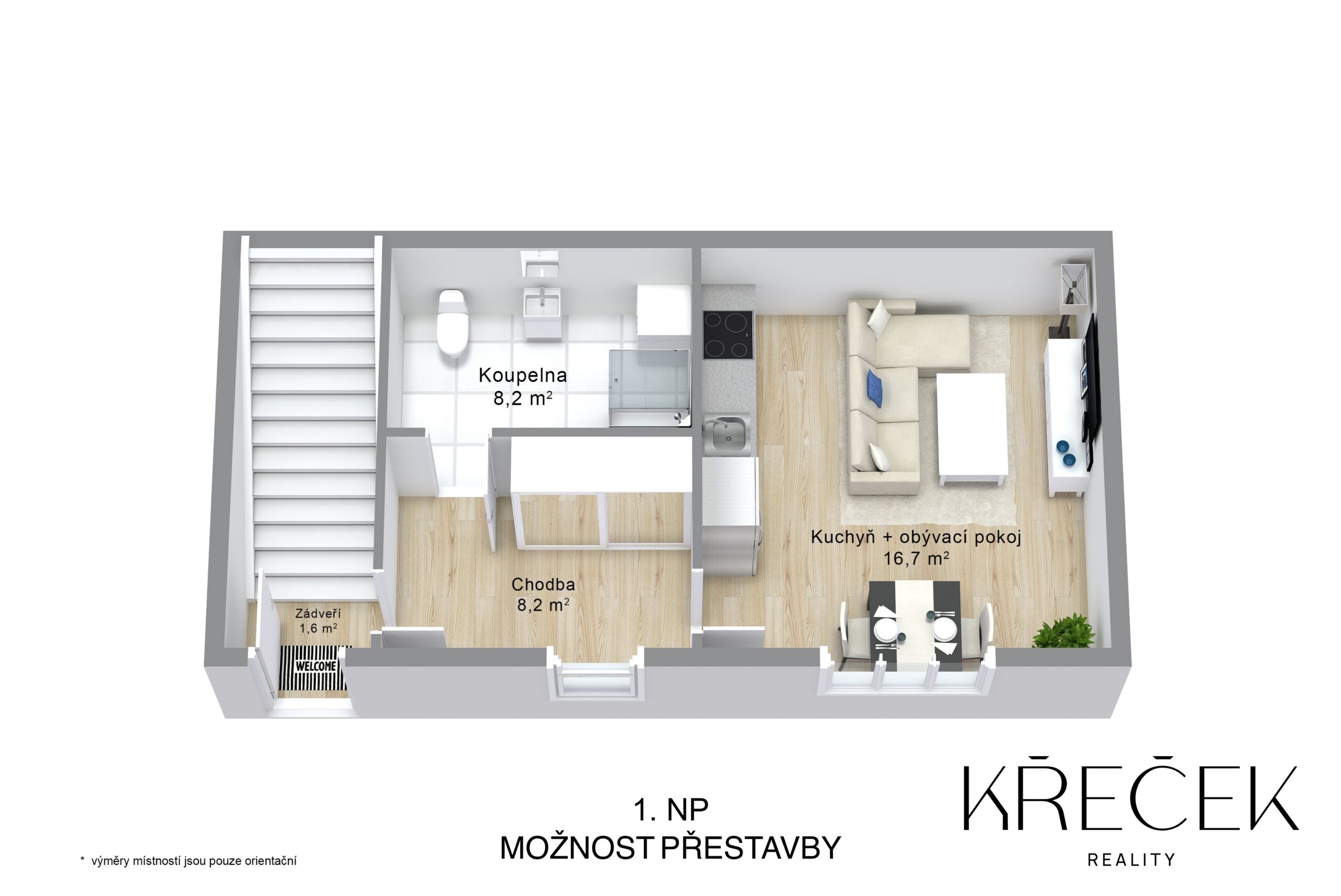 Nemovitost nabízí široké možnosti využití – ideální pro kompletní rekonstrukci pro velkou rodinu nebo dvě generace, s možností rozdělení na dvě samostatné bytové jednotky, přičemž každá může využívat svou část zahrady. K dispozici je také prostor pro přístavbu dalšího patra, což umožňuje maximálně využít potenciál domu. Velkou výhodou je možnost čerpání dotace z programu Nová zelená úsporám – Oprav dům po babičce, která může výrazně snížit náklady na rekonstrukci, přičemž nabízíme i pomoc při vyřízení žádosti. Zahrada poskytuje prostor pro úpravy dle vlastních představ, ideální pro grilování, zahradničení, relaxaci či pergolu – vše podle fantazie nového majitele.